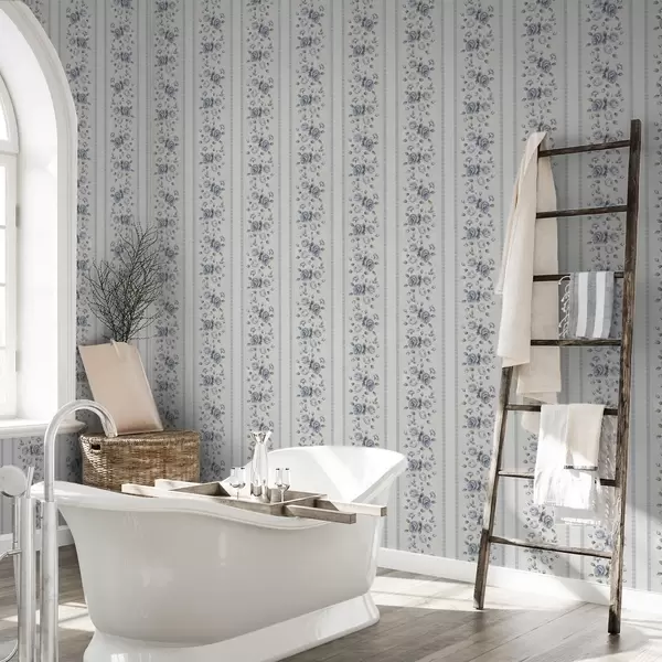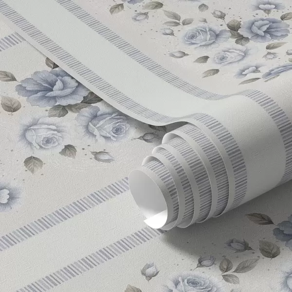 Tapéta Kék rózsák függőleges sávokban világos háttér előtt Nr. a00860