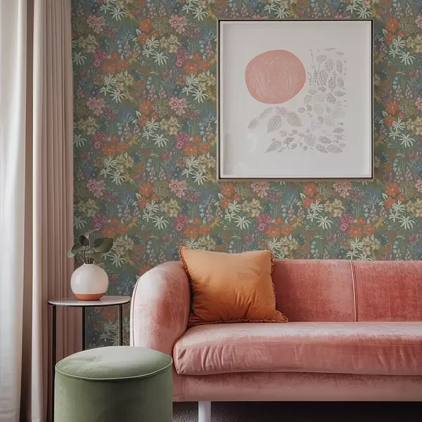Tapéta Festői réti virágok zsályazöld alapon Nr. a00864