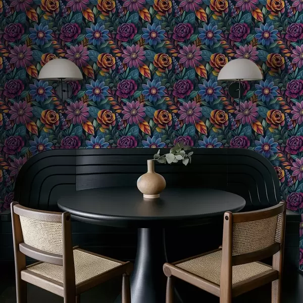 Tapéta Élénk, ékszer színekben pompázó virágok mélykék alapon Nr. a00871