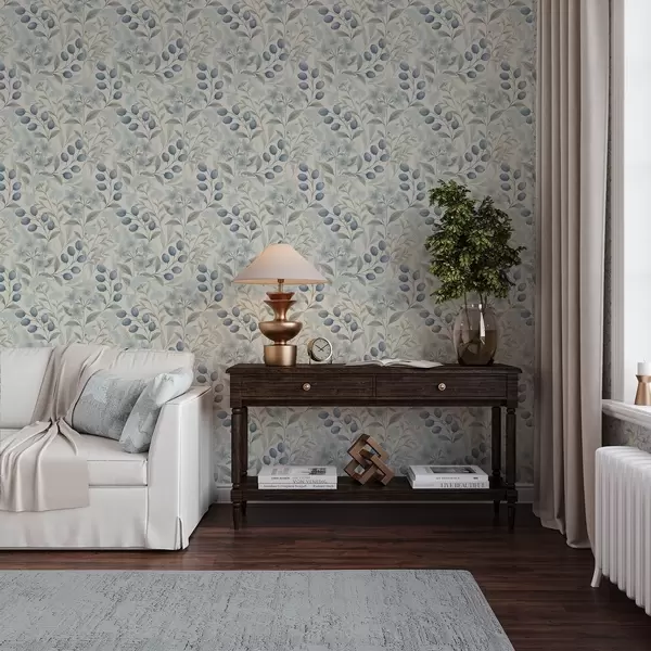 Tapéta Kék bogyók és világos virágok elefántcsonton Nr. a00872