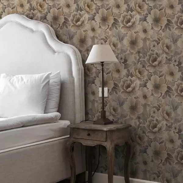 Tapéta Festői bézs virágok füstös absztrakt háttér előtt Nr. a00884
