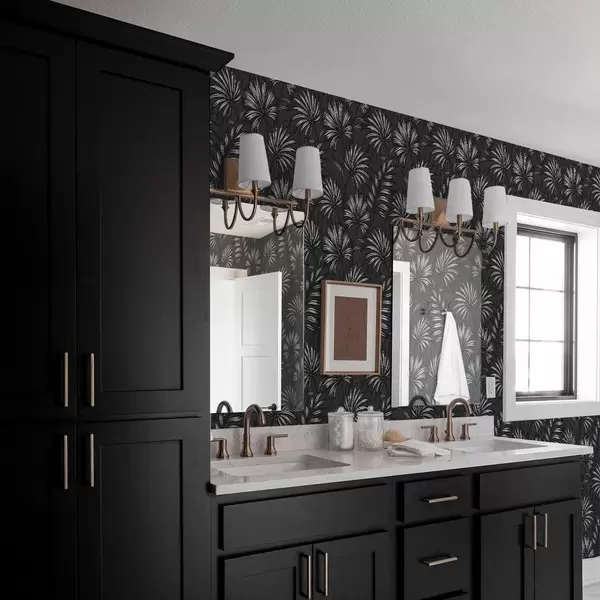 Tapéta Fekete-fehér pálmalevelek sötét háttér előtt Nr. a00891