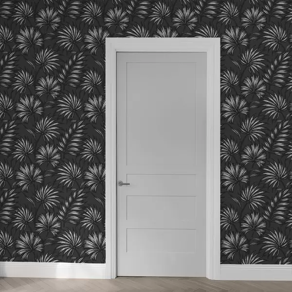 Tapéta Fekete-fehér pálmalevelek sötét háttér előtt Nr. a00891