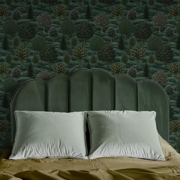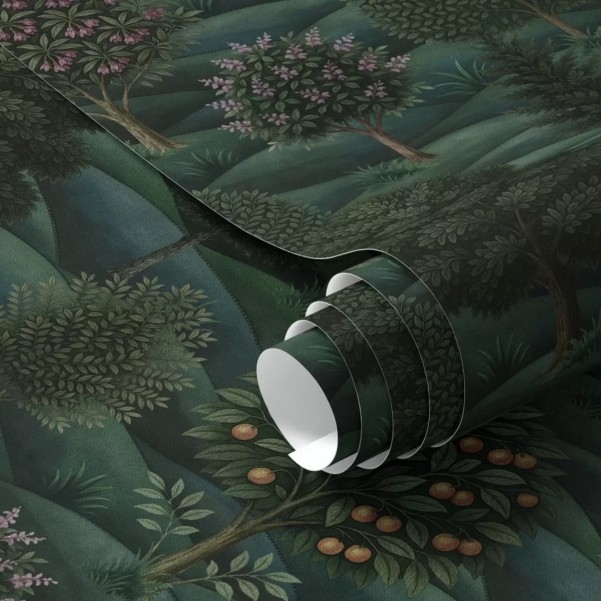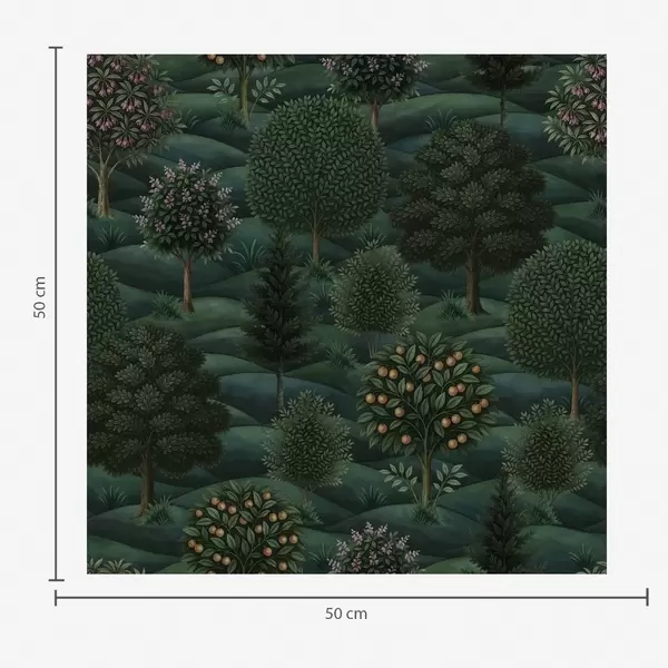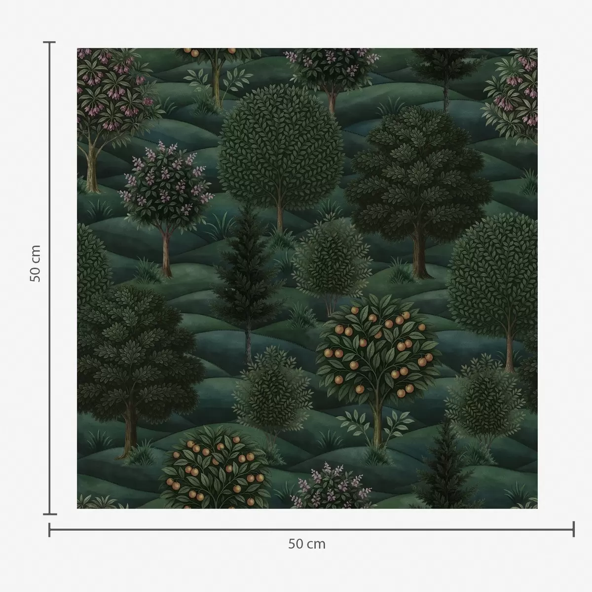 Tapéta Gazdag, zöld, hullámzó táj mintás fákkal Nr. a00892