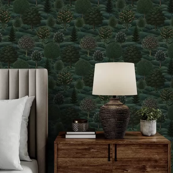Tapéta Gazdag, zöld, hullámzó táj mintás fákkal Nr. a00892