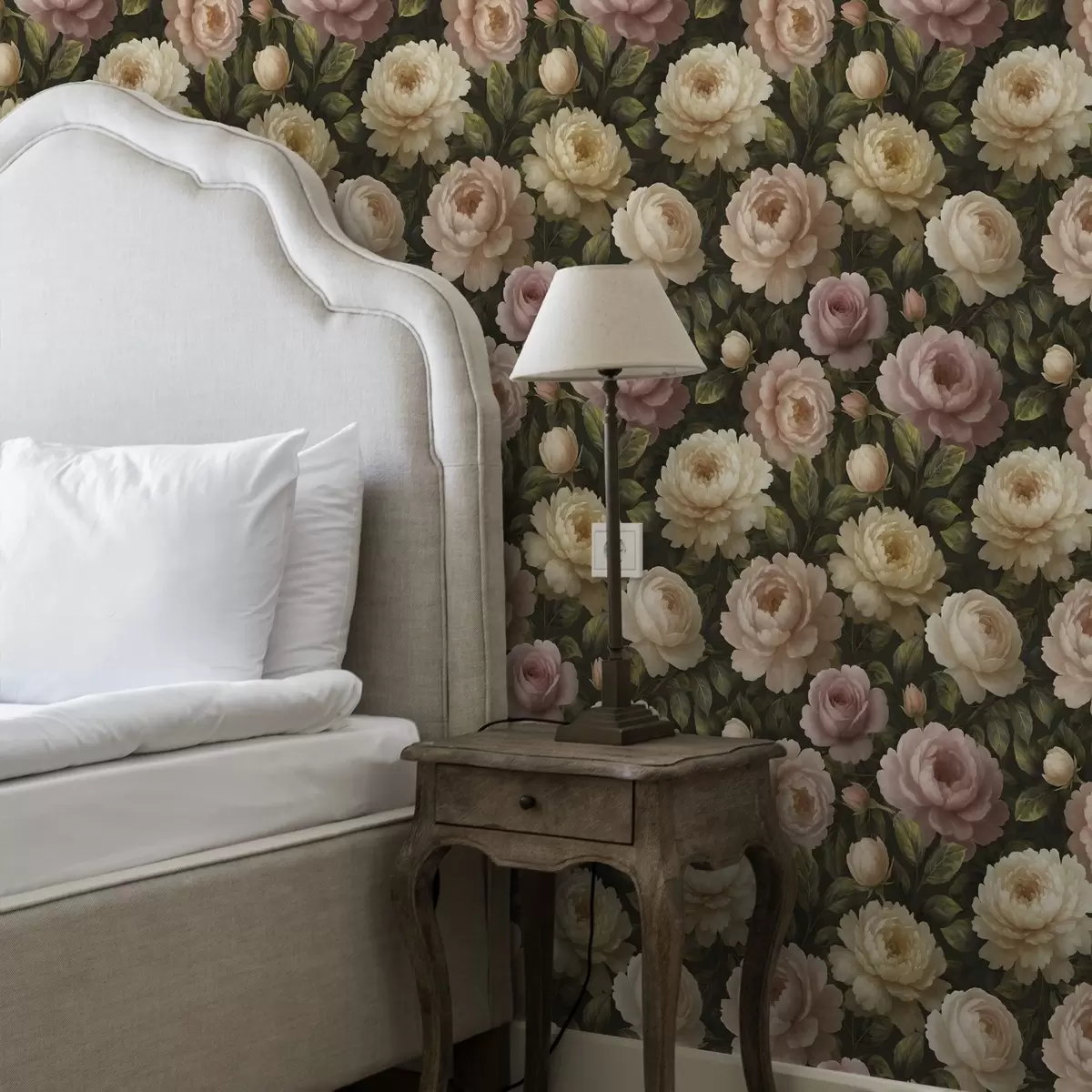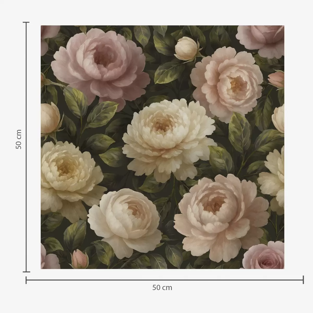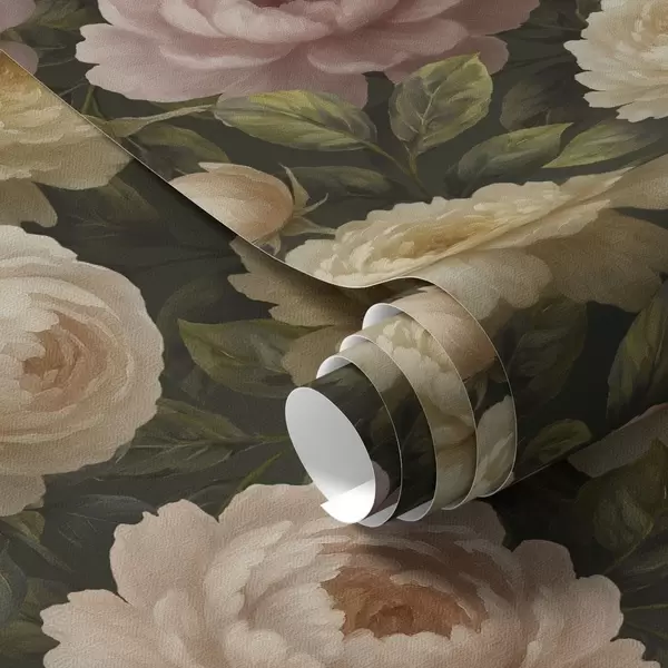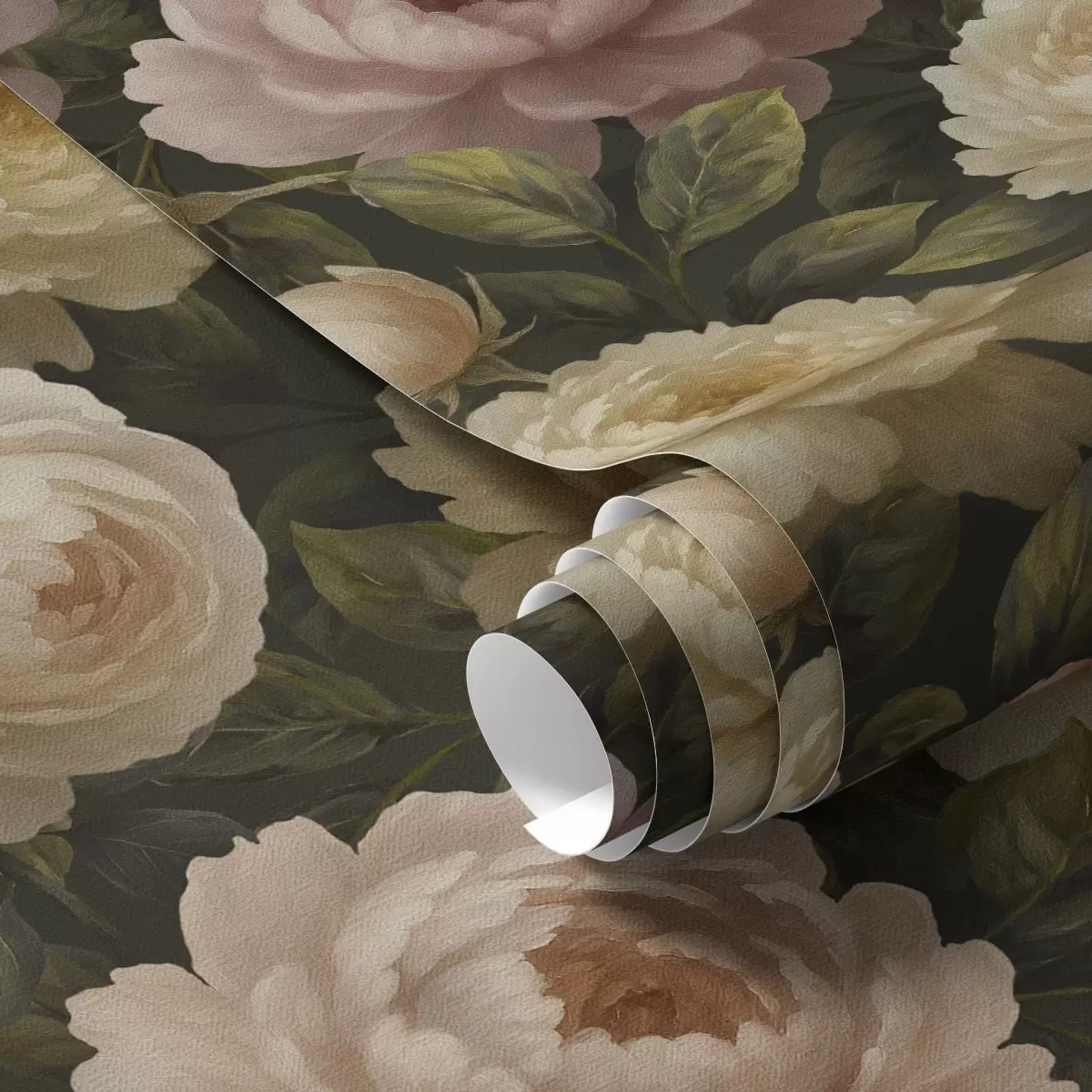Tapéta Romantikus pünkösdi rózsák sötét botanikai háttér előtt Nr. a00893