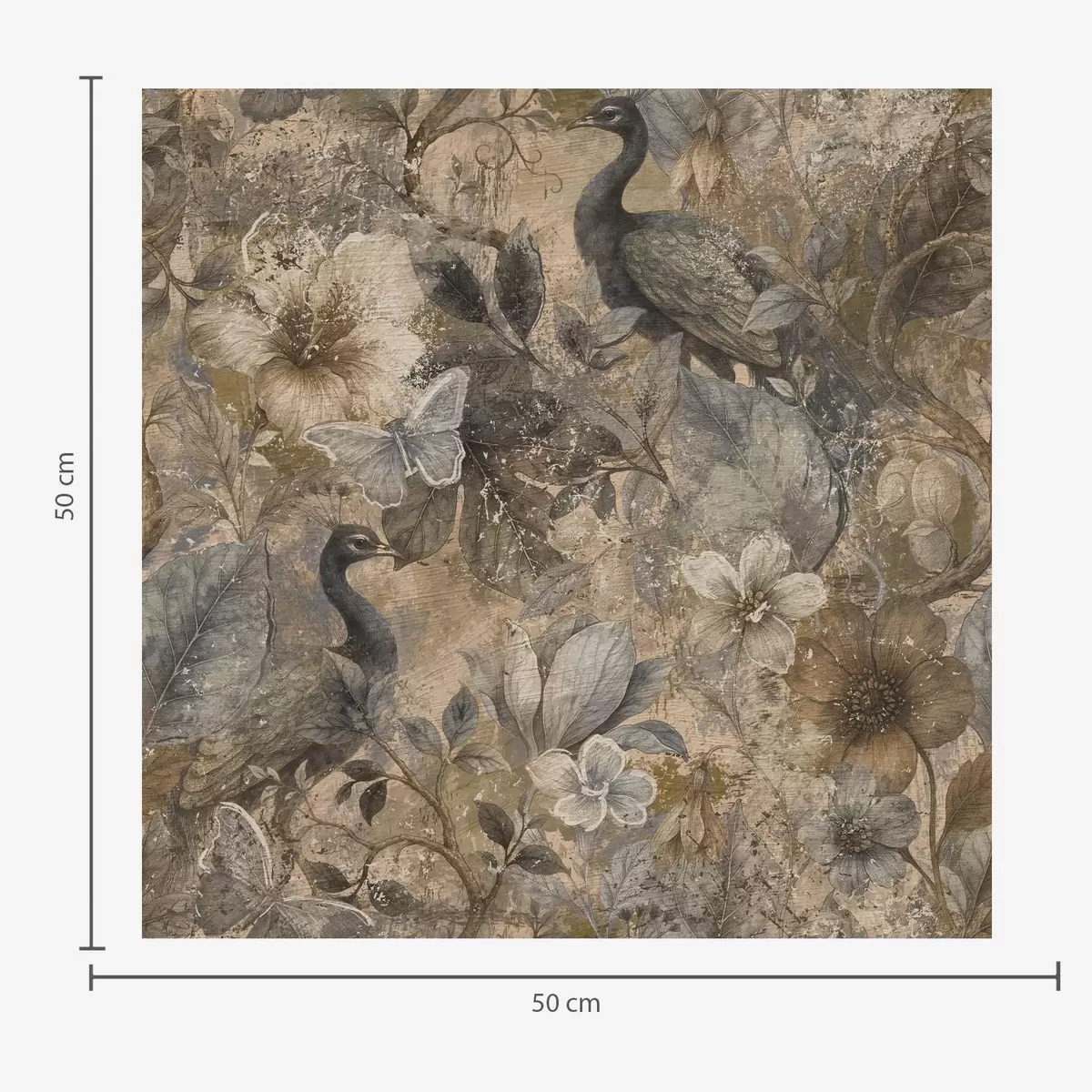 Tapéta Öregített virágos kollázs pávákkal és lepkékkel Nr. a00897