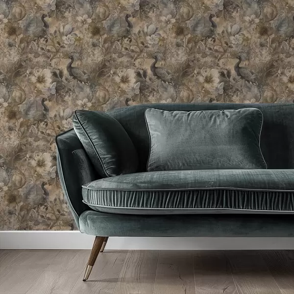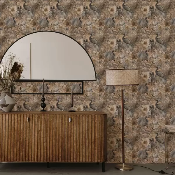Tapéta Öregített virágos kollázs pávákkal és lepkékkel Nr. a00897