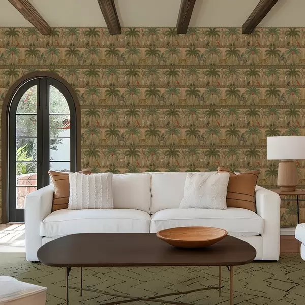 Tapéta Dekoratív szavanna állatok pálmafák és szegélyek között Nr. a00898