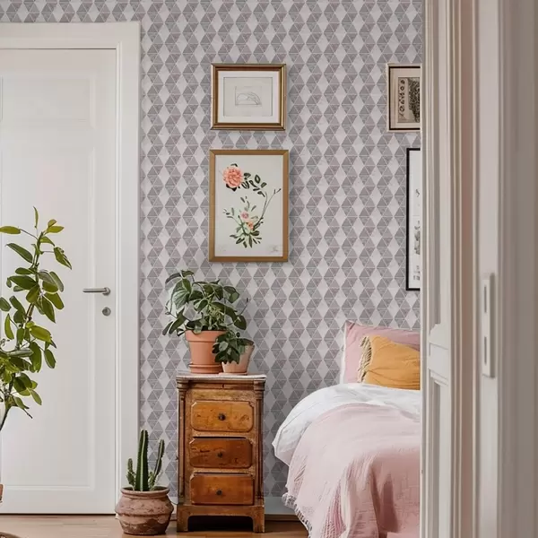 Tapéta Puha háromszögek szürke-rózsaszín és púderes árnyalatokban Nr. a00918