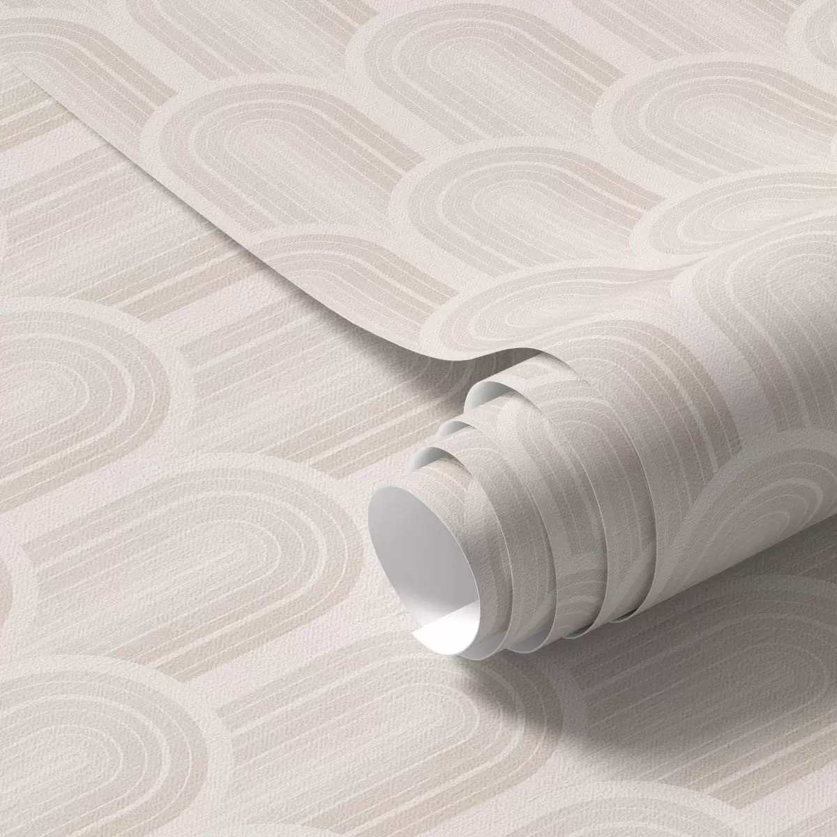 Tapéta Lágy bézs csíkokból álló íves alakzatok sora, retro hangulat Nr. a00923