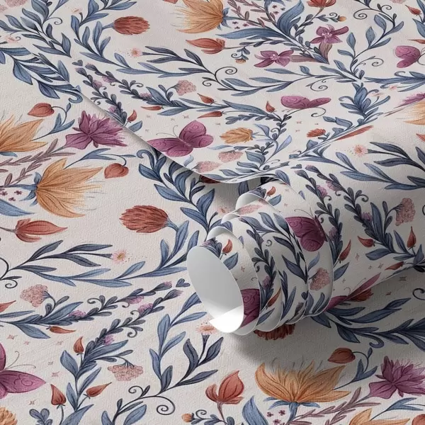 Tapéta Virágos damaszt, fehér alapon sötétkék és terrakotta színű pillangókkal Nr. a00926v1
