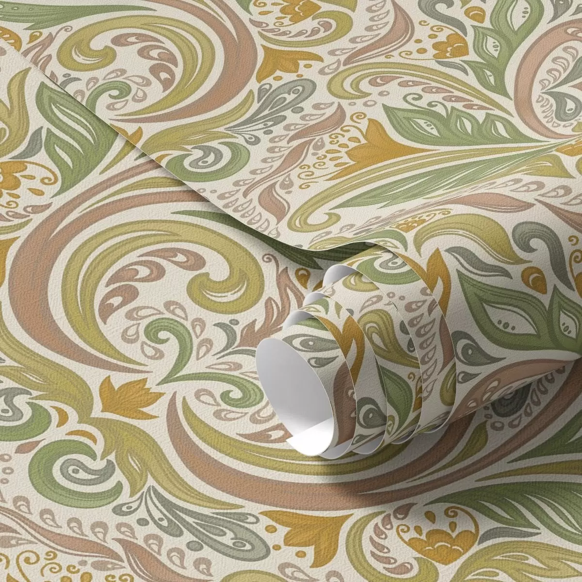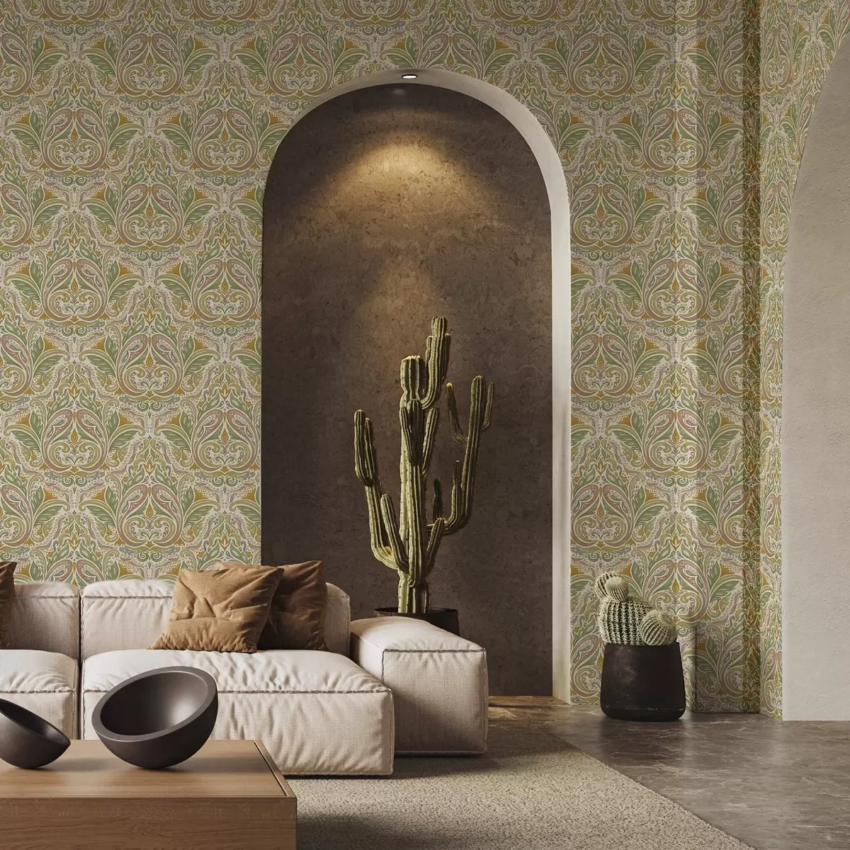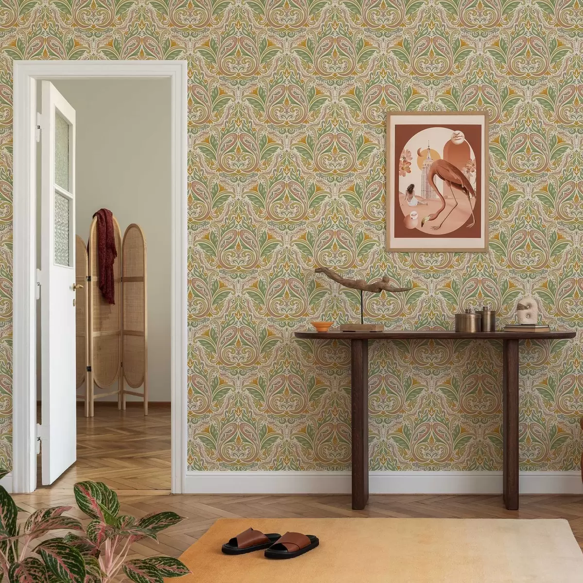 Tapéta Zöld és terrakotta árnyalatú díszes leveles örvények Nr. a00927v1