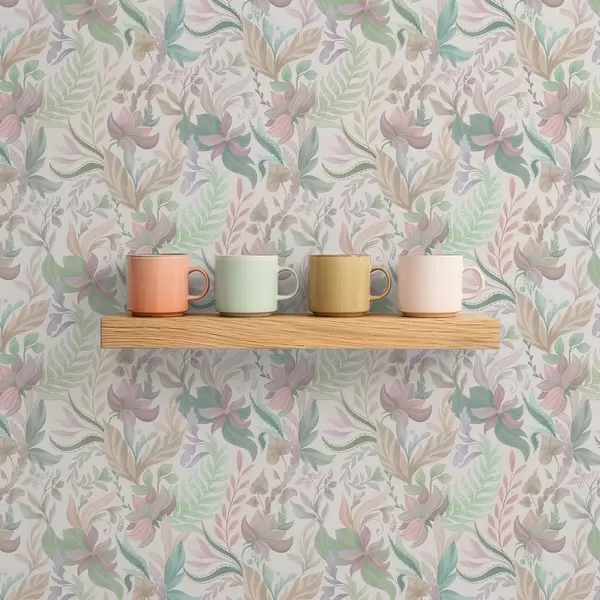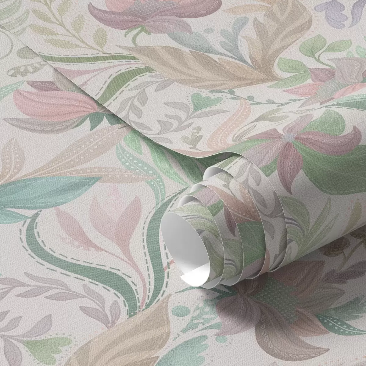 Tapéta Finom pasztell virágok és levelek világos háttér előtt Nr. a00931