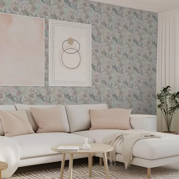Tapéta Finom pasztell virágok és levelek világos háttér előtt Nr. a00931