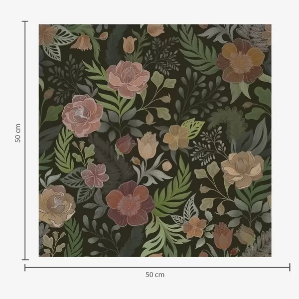 Tapéta Gazdag virágok és zöld növényzet mély, sötét háttér előtt Nr. a00932
