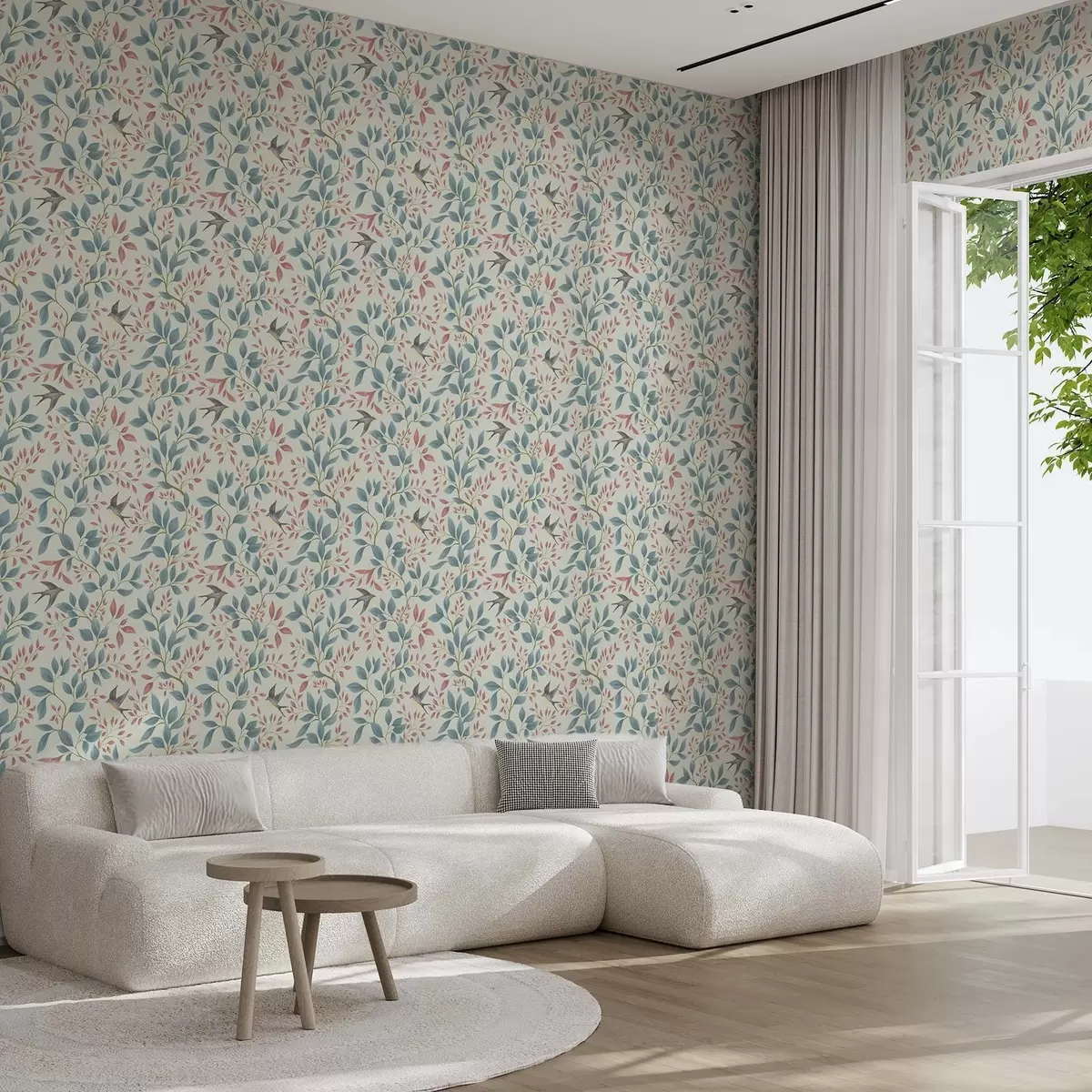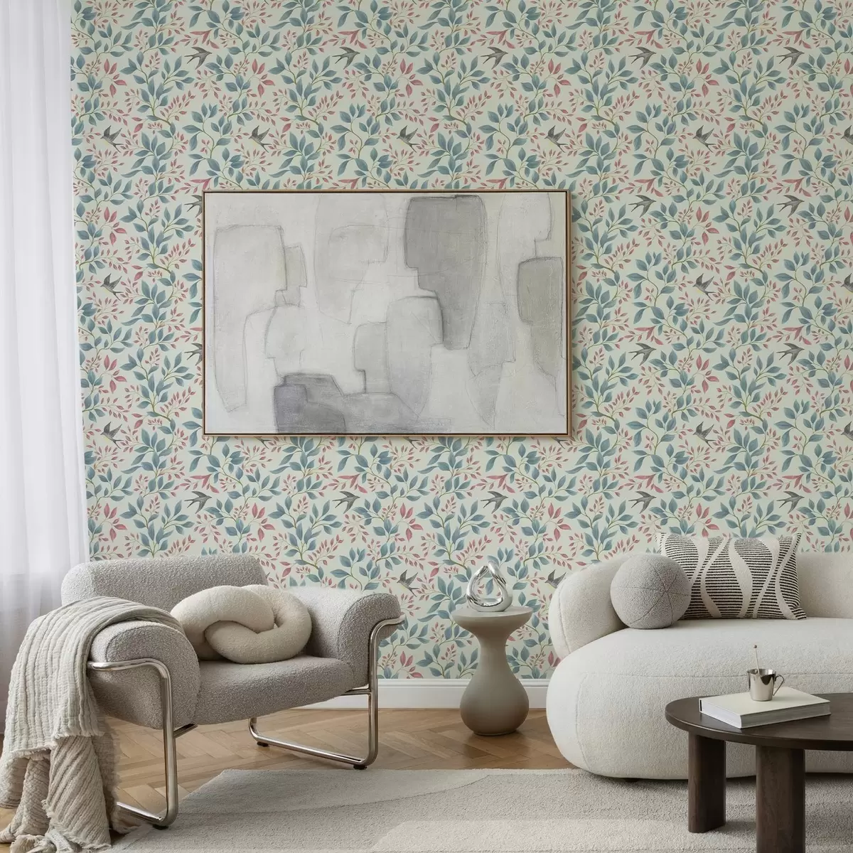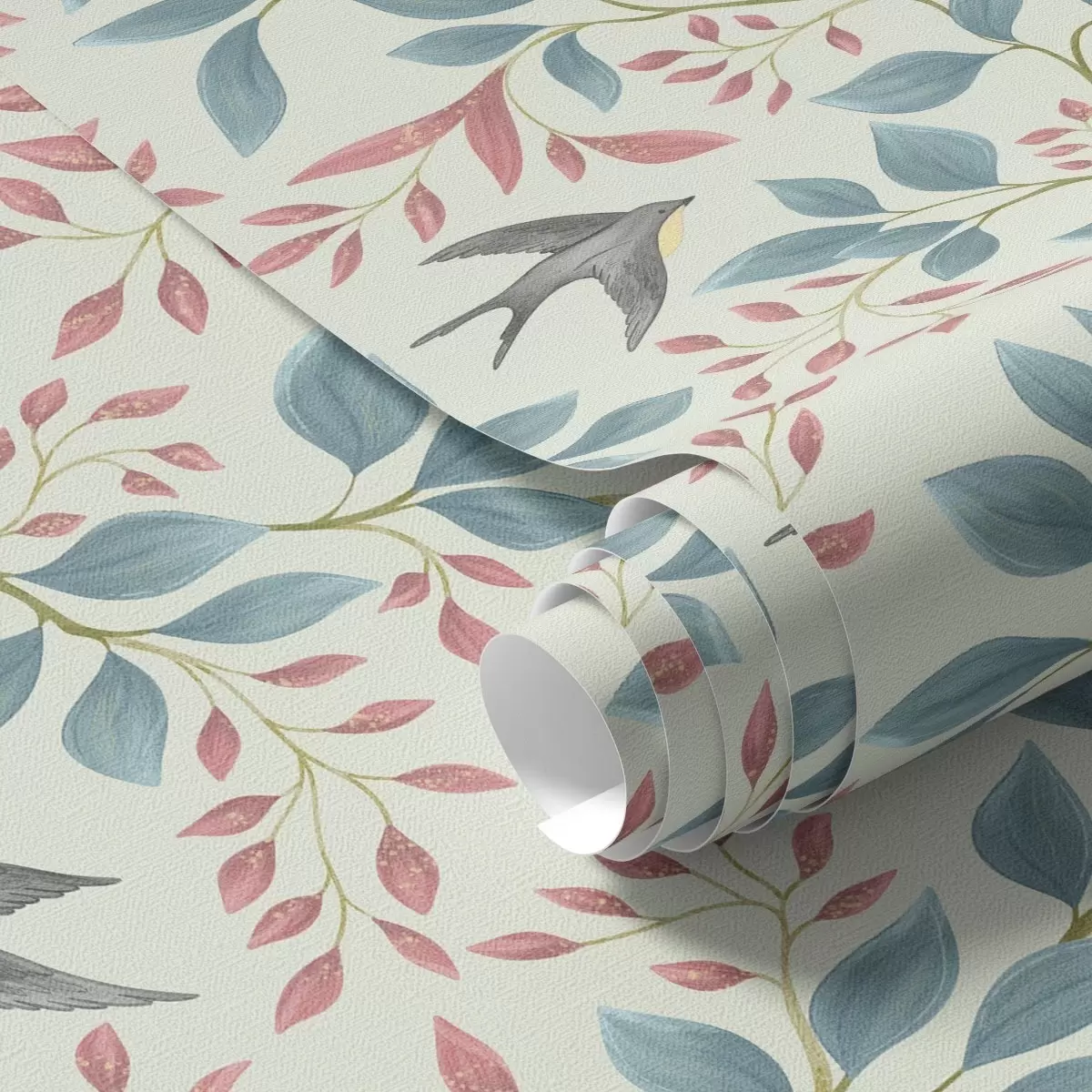 Tapéta Légies ágak és madarak világos menta háttér előtt Nr. a00933v1