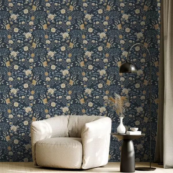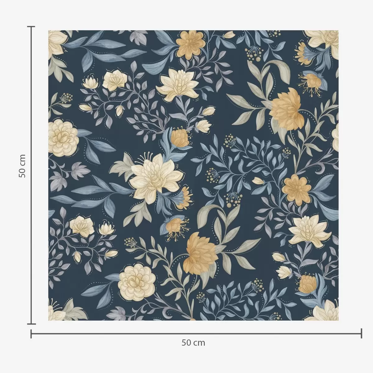 Tapéta Sötét esti kék háttér előtt sárga és kék virágok Nr. a00934v1