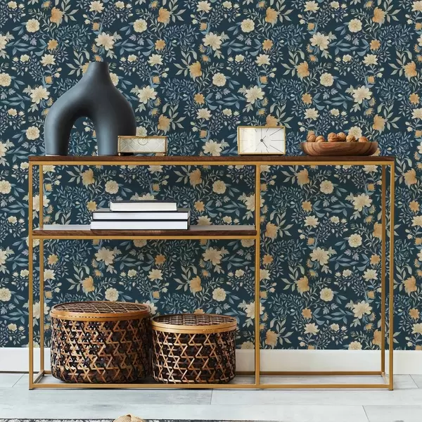 Tapéta Sötét esti kék háttér előtt sárga és kék virágok Nr. a00934v1
