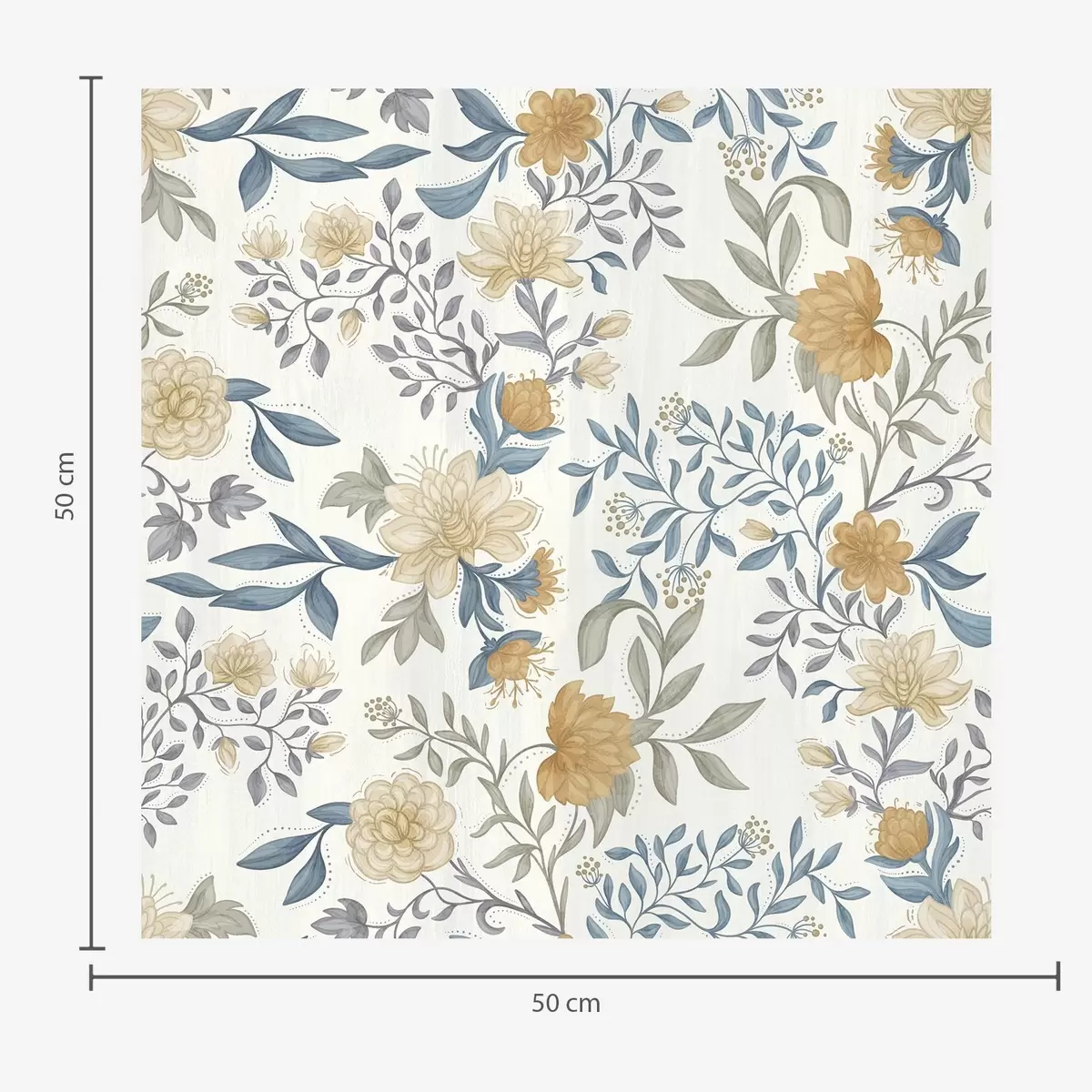 Tapéta Sárga virágok és kék zöld növényzet tejfehér háttér előtt Nr. a00934v2