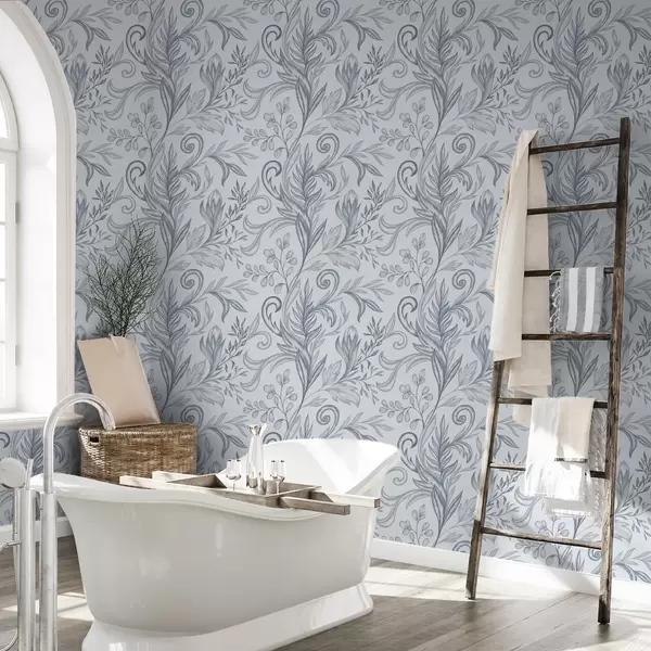 Tapéta Világos jégkék, hullámos levelek, ceruzával rajzolt textúrával Nr. a00935v1