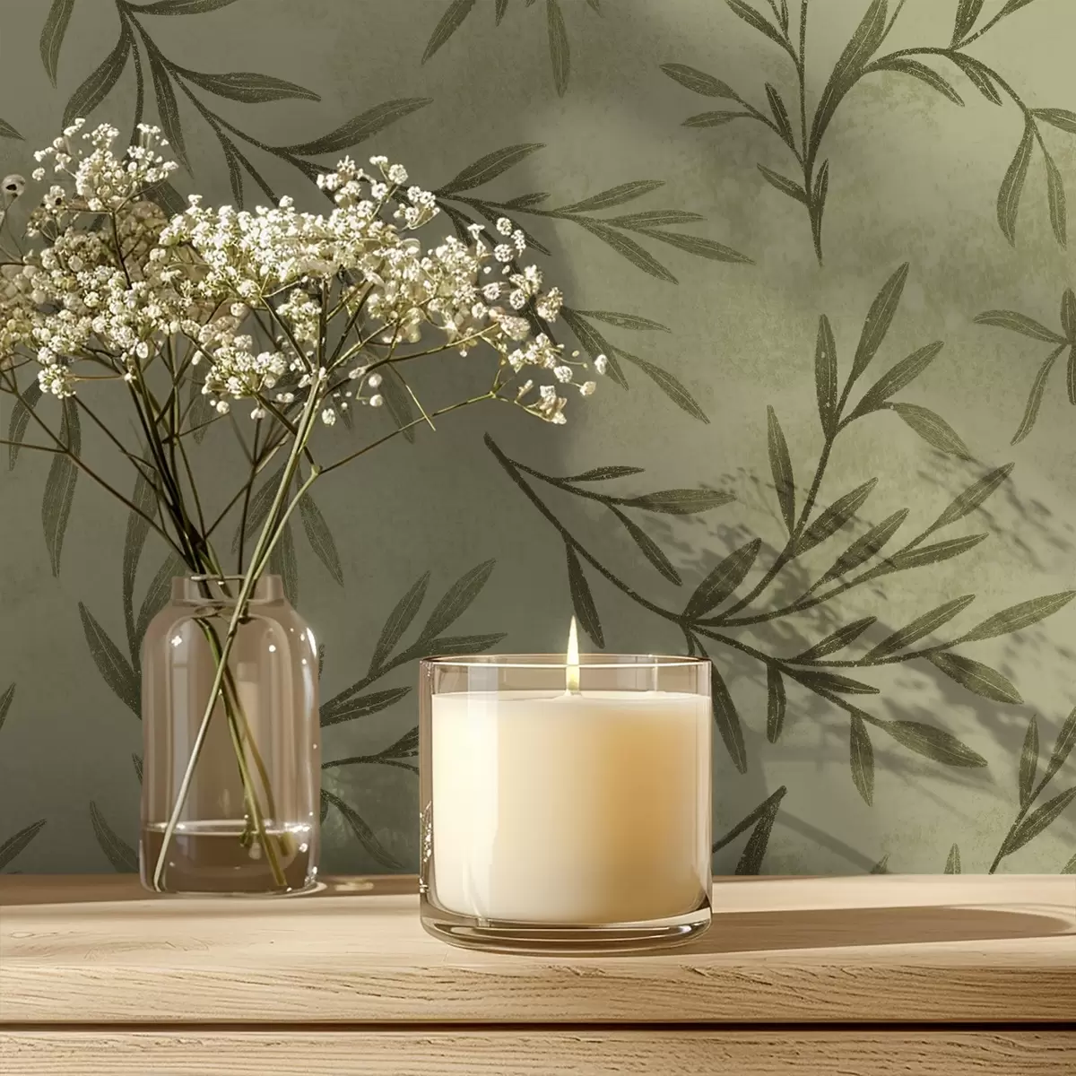 Tapéta Olajágak halvány sárgászöld texturált alapon Nr. a00936