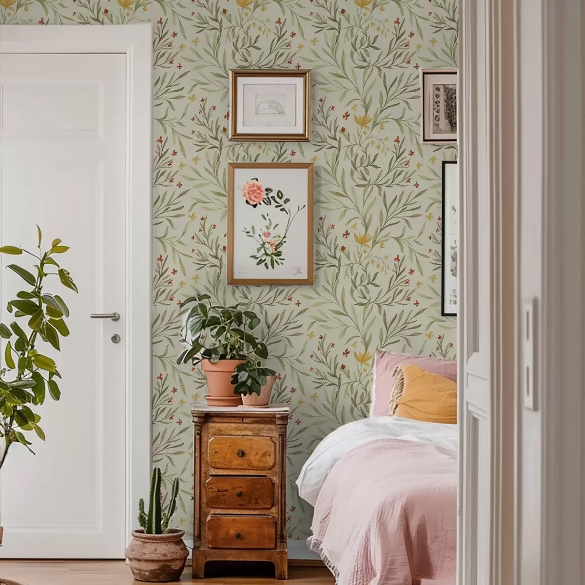 Tapéta Sárga és piros virágok világos zöldes háttér előtt Nr. a00937
