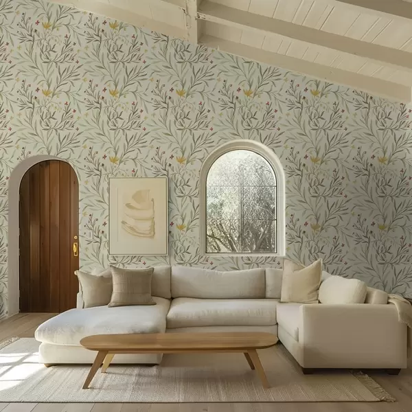 Tapéta Sárga és piros virágok világos zöldes háttér előtt Nr. a00937