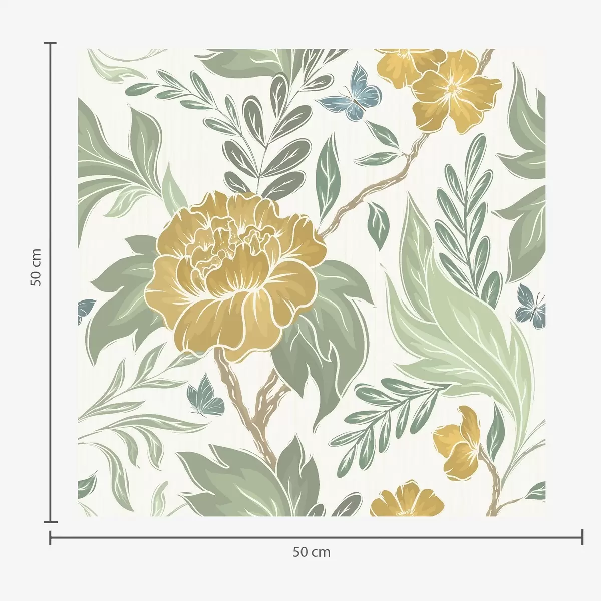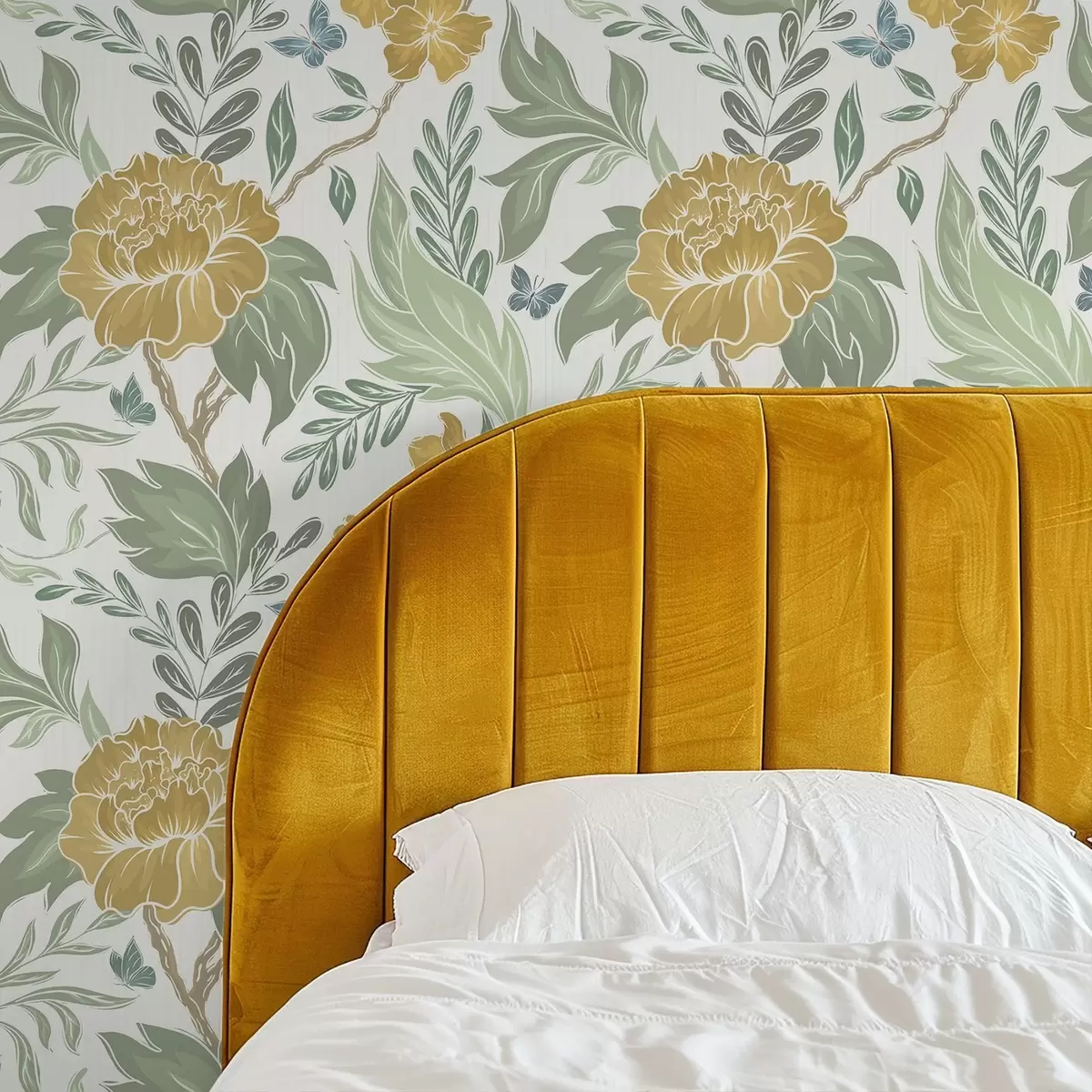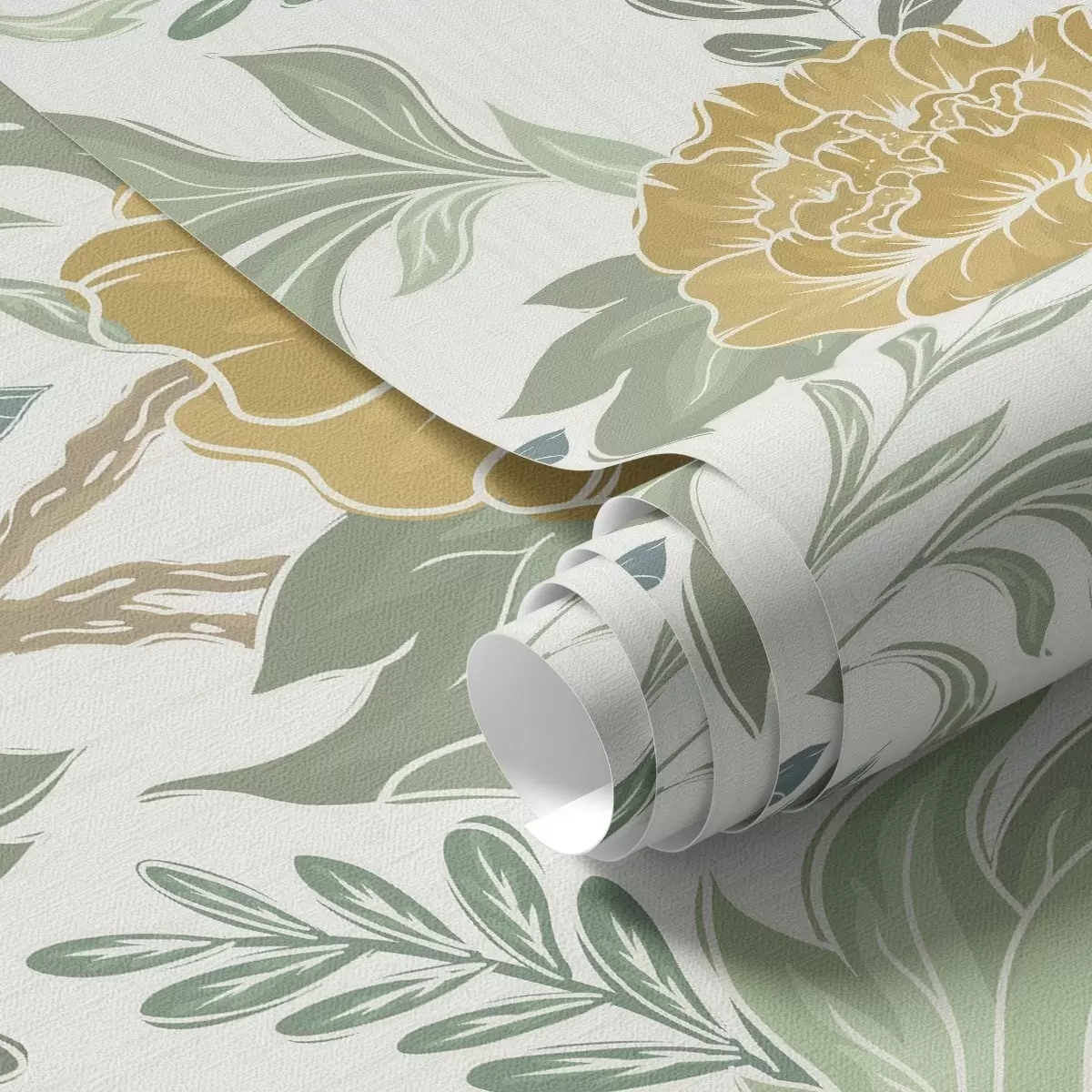 Tapéta Nagy sárga pünkösdi rózsák és zöld növényzet világos háttér előtt Nr. a00941