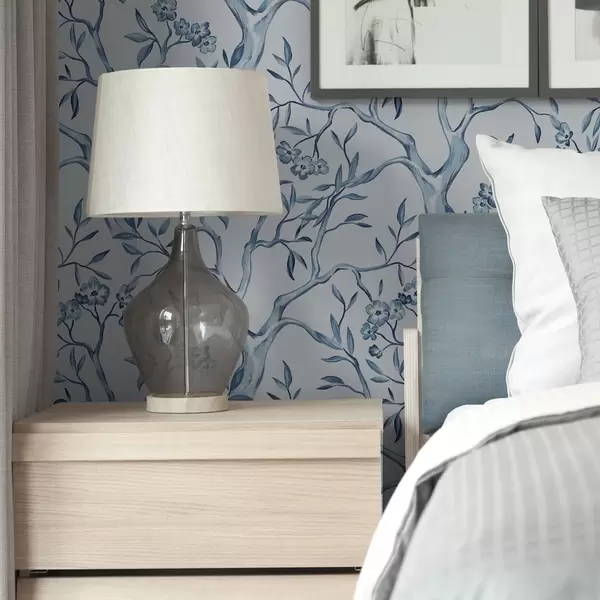 Tapéta Vízfestékkel festett kék ágak virágokkal és lepkékkel világos háttér előtt Nr. a00951