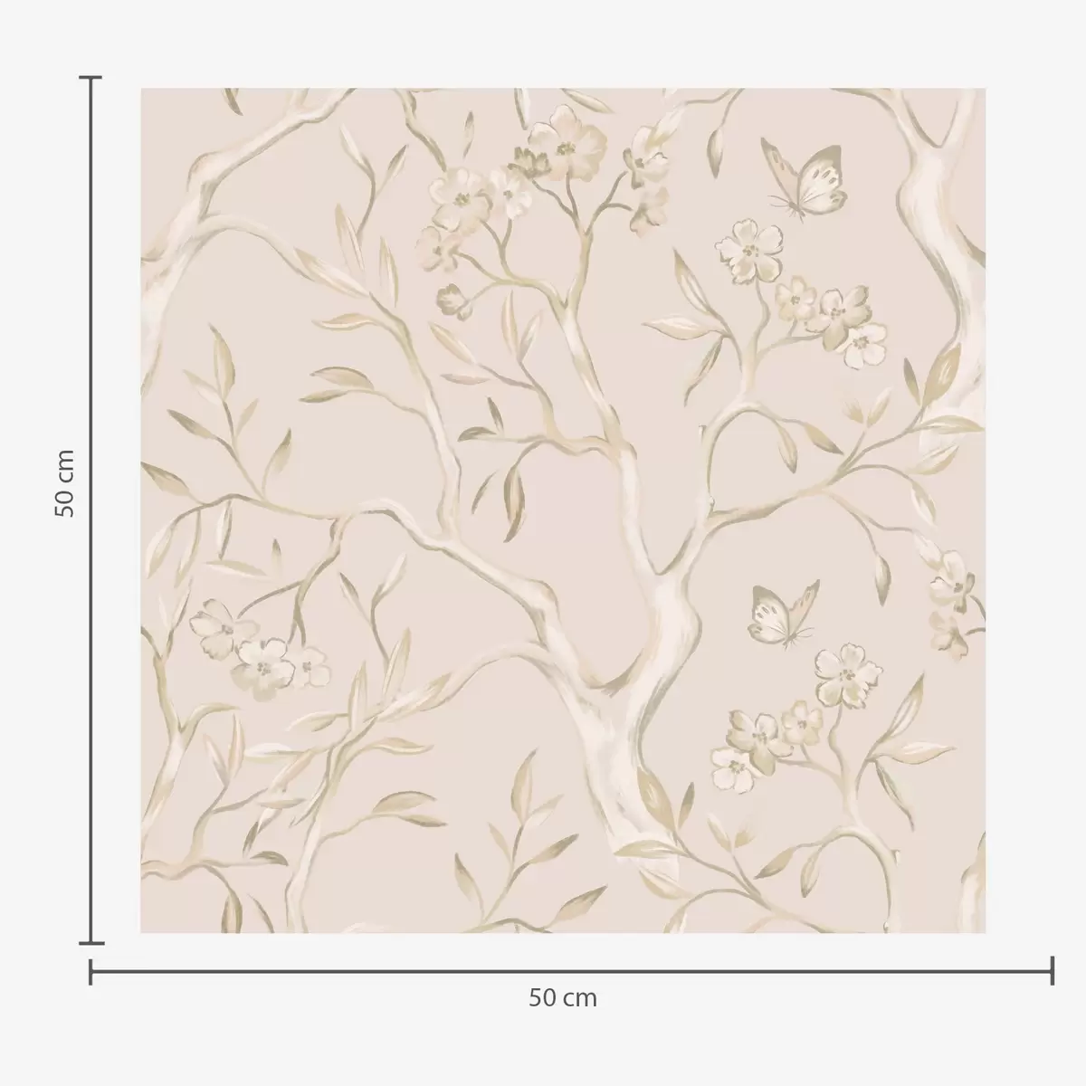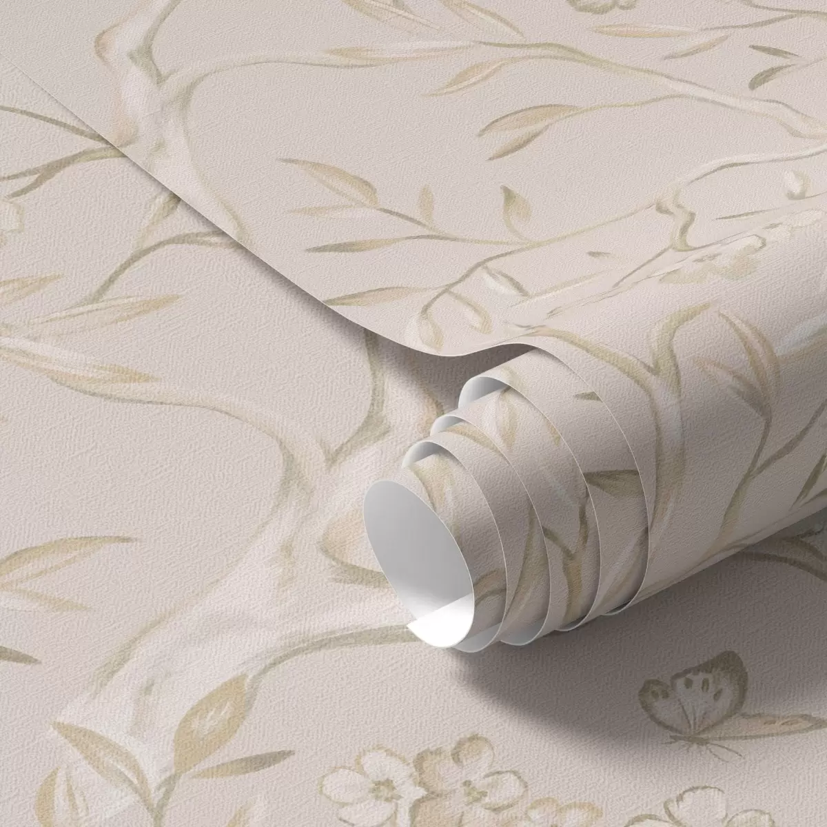 Tapéta Bézs színű virágos ágak pillangókkal lágy háttér előtt Nr. a00951v2