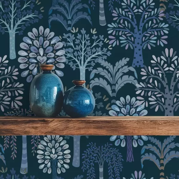 Tapéta Éjszakai erdő kék árnyalatú díszfákkal Nr. a00960v2