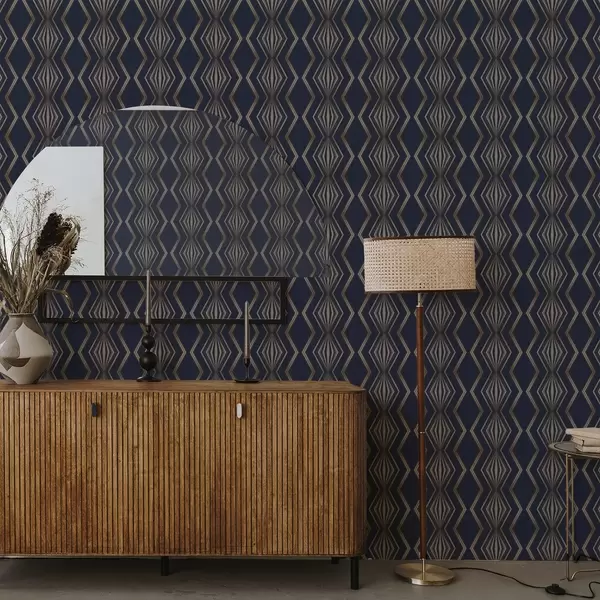 Tapéta Sötétkék háttér geometrikus rombuszokkal és cikk-cakk mintákkal Nr. a00974v2