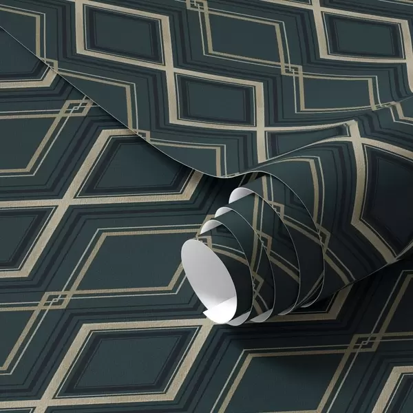 Tapéta Sötétzöld háttér ismétlődő rombuszrácsokkal Nr. a00975v1