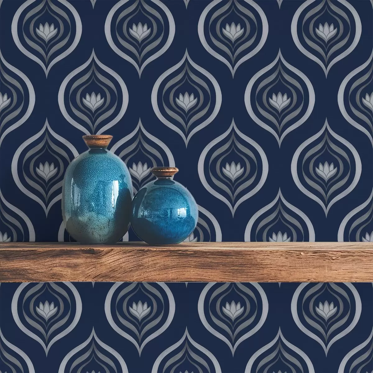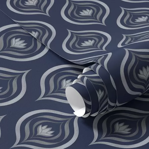 Tapéta Kontrasztos cseppmotívumok virággal sötétkék háttér előtt Nr. a00977v1
