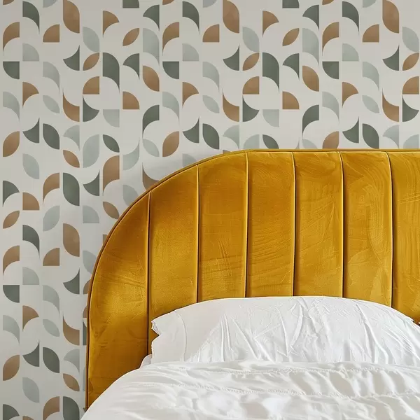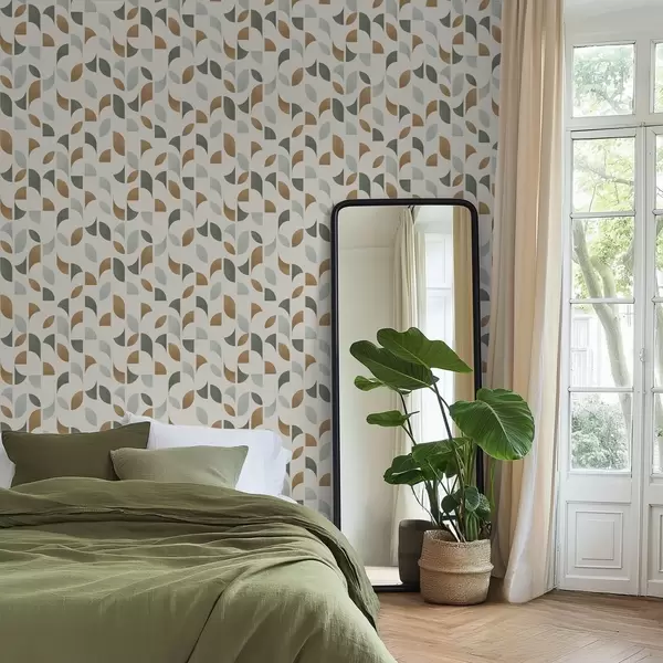 Tapéta Absztrakt félkörök és levelek zöld és terrakotta színben Nr. a00985