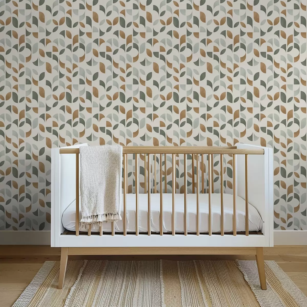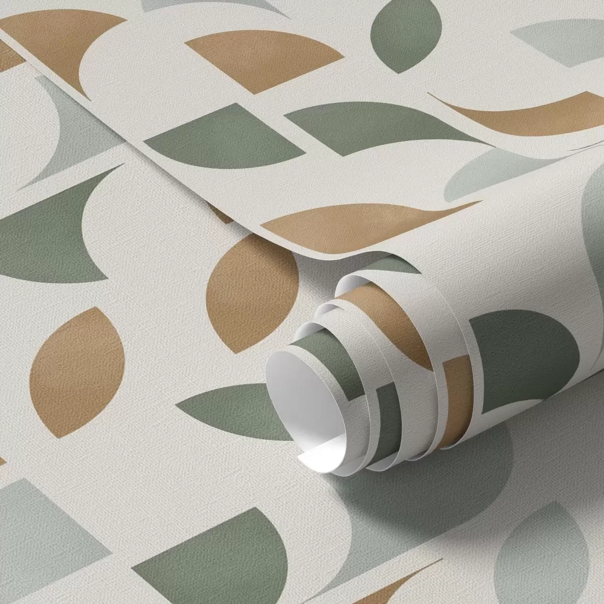 Tapéta Félkörök és levelek függőleges oszlopai, zöld-terrakotta Nr. a00986