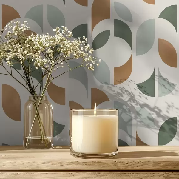 Tapéta Félkörök és levelek függőleges oszlopai, zöld-terrakotta Nr. a00986