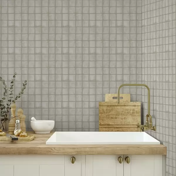 Tapéta Négyzet alakú csempe utánzat puha szürkés-zöld színpalettában Nr. a00988