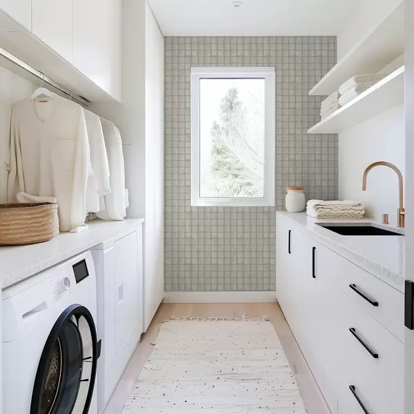 Tapéta Négyzet alakú csempe utánzat puha szürkés-zöld színpalettában Nr. a00988