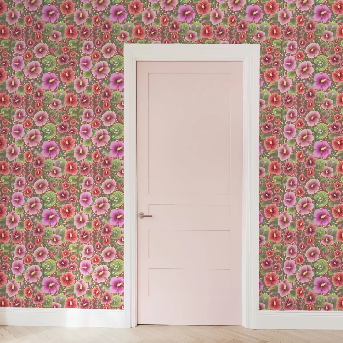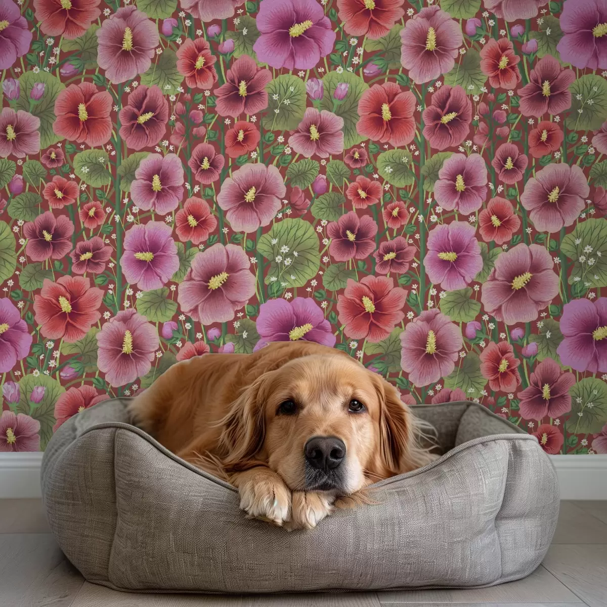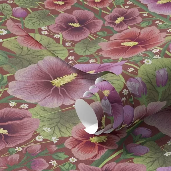 Tapéta Virágzó hibiszkusz meleg barnás-vörös háttér előtt Nr. a00993v1