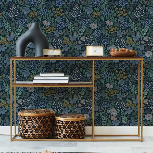 Tapéta Éjszakai kert kék liliomokkal, bogyós gyümölcsökkel és vadon termő növényzettel Nr. a00996