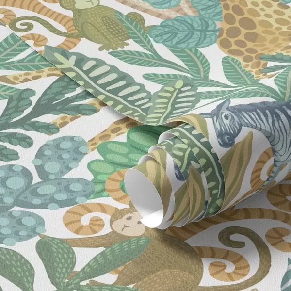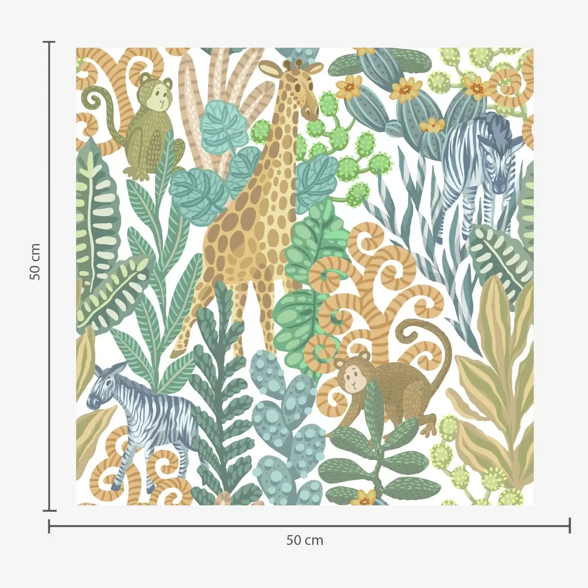 Tapéta Vidám szavanna állatok levelek között fehér háttér előtt Nr. a01000