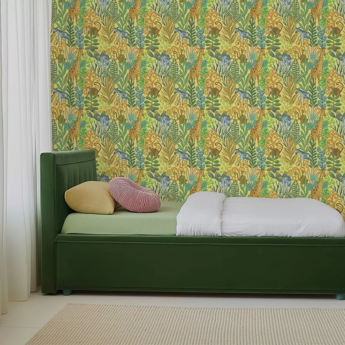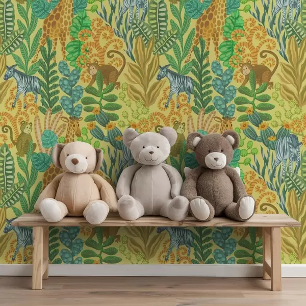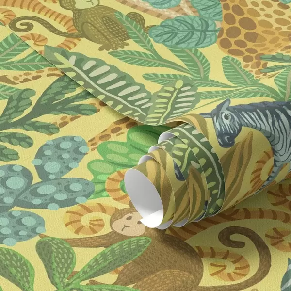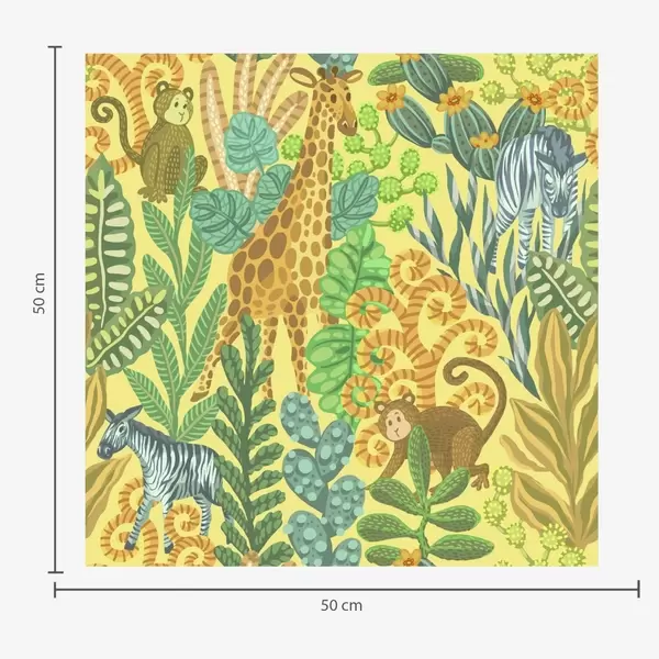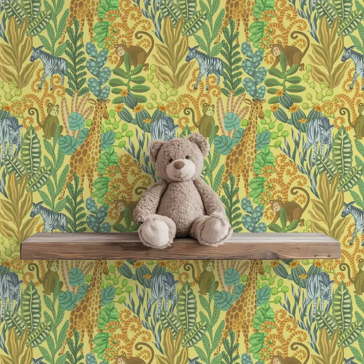 Tapéta Zsiráf, zebra és majom egy élénk sárga szavannán Nr. a01000v1