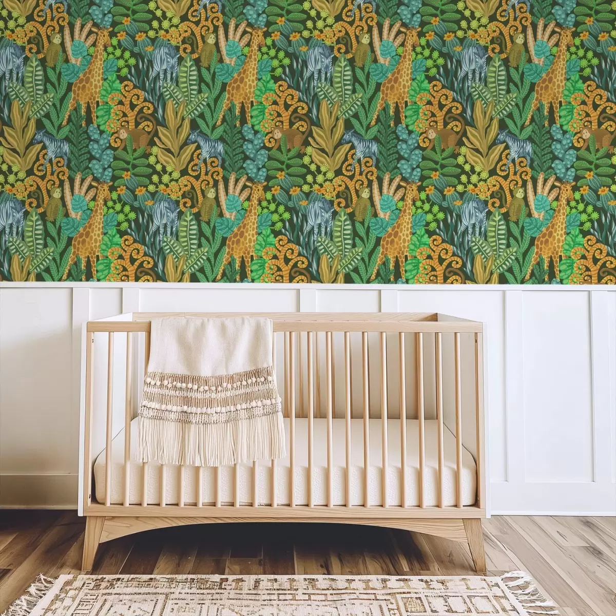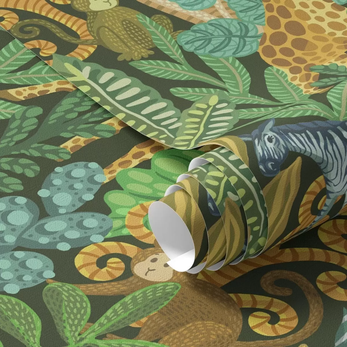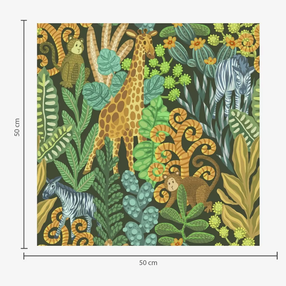 Tapéta Sűrű dzsungel állatokkal sötétzöld háttér előtt Nr. a01000v2