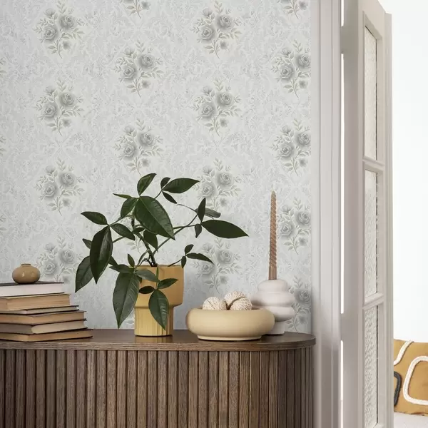 Tapéta Világos damasztminta szürke rózsákkal, puha rombuszok között Nr. a01024