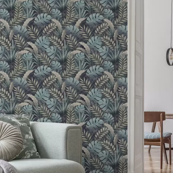 Tapéta Hűvös kékes-zöldes árnyalatú trópusi lombozat Nr. a01035