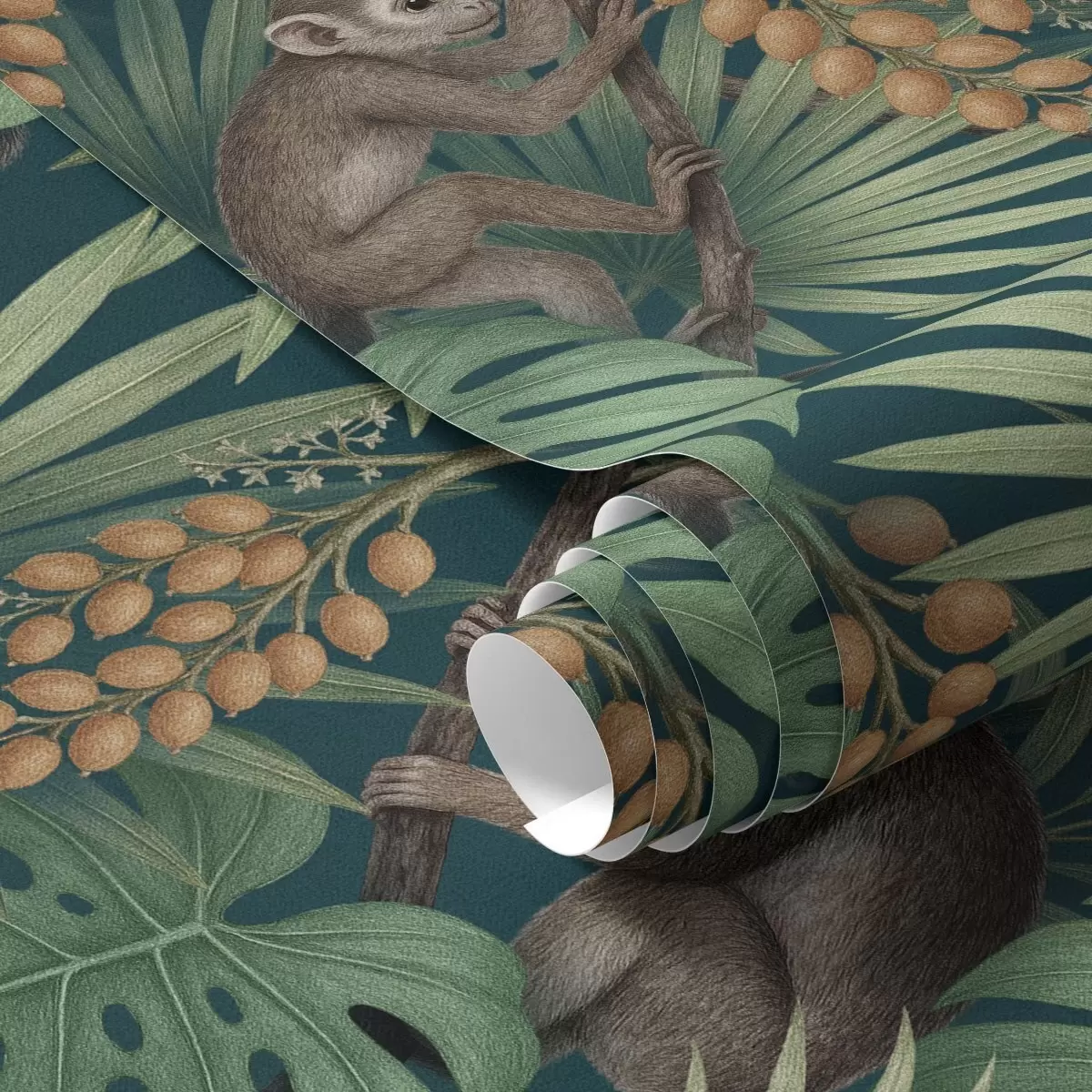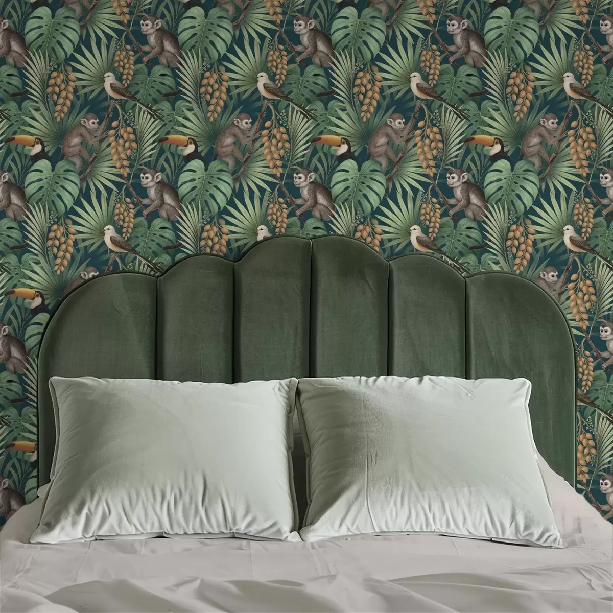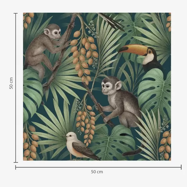 Tapéta Majmok és trópusi madarak a sűrű dzsungel lombozatában Nr. a01037