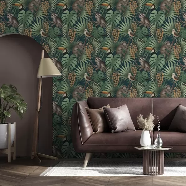 Tapéta Majmok és trópusi madarak a sűrű dzsungel lombozatában Nr. a01037