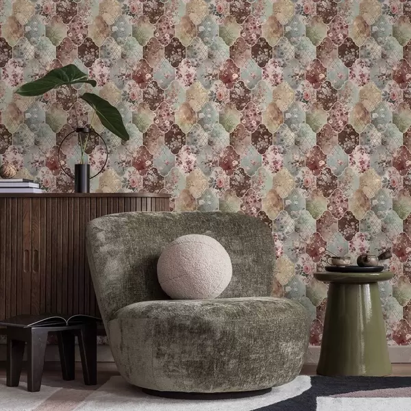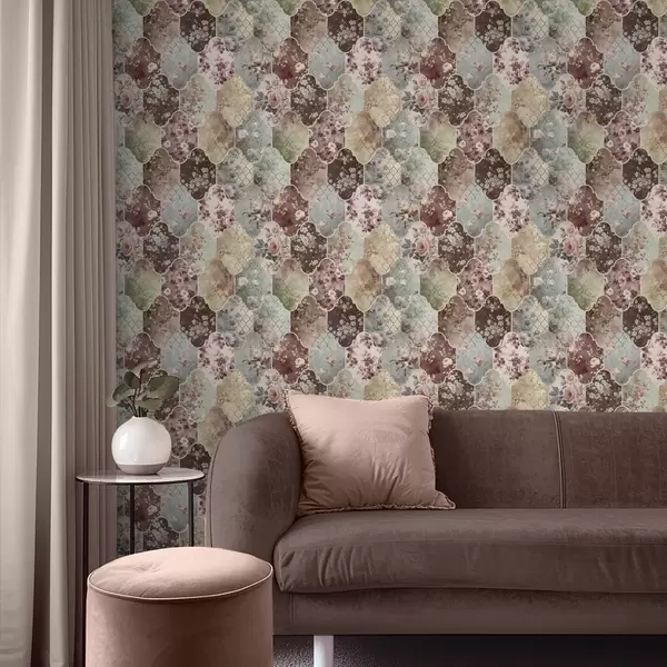 Tapéta Virágmintás panelek és kopott mintás csempe mozaikja Nr. a01038